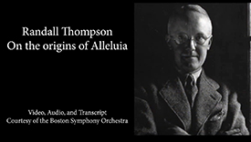 And on this date in 1899, composer Randall Thompson was born in New York City. Best known for his choral music, although he also wrote symphonies and an opera, his Alleluia has been sung by choirs around the world. Boston Symphony music director Serge Koussevitzky commissioned it for the 1940 opening ceremony of the Berkshire Music Center at Tanglewood, requesting a piece that could be learned and sung by international musicians in a single, short rehearsal.
