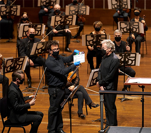 The Cleveland Orchestra returns to the Severance Hall stage tonight, masked, reduced in numbers, and players physically distanced, in a recorded, one-hour performance. The broadcast will be available for three months to subscribers, donors, membership holders, and individuals who subscribe to premium content on the Orchestra’s new streaming platform, Adella.